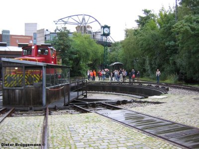 Die Mitglieder des Arbeitskreises unterstützen das Museum beim Betrieb während der Fahrten auf der Anschlussbahn zwischen dem Hauptgebäude in der Trebbiner Straße und dem Depot an der Monumentenstraße (Monumentenhalle).