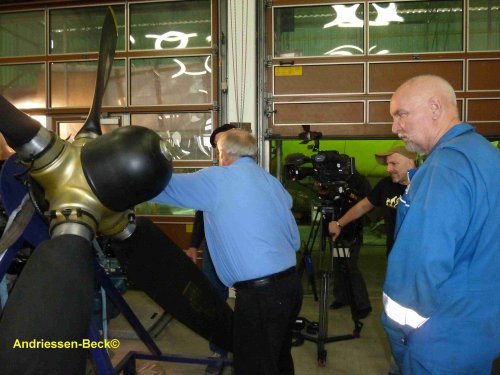 Das RBB-Fernsehteam bei den Dreharbeiten am Iljuschinrumpf.