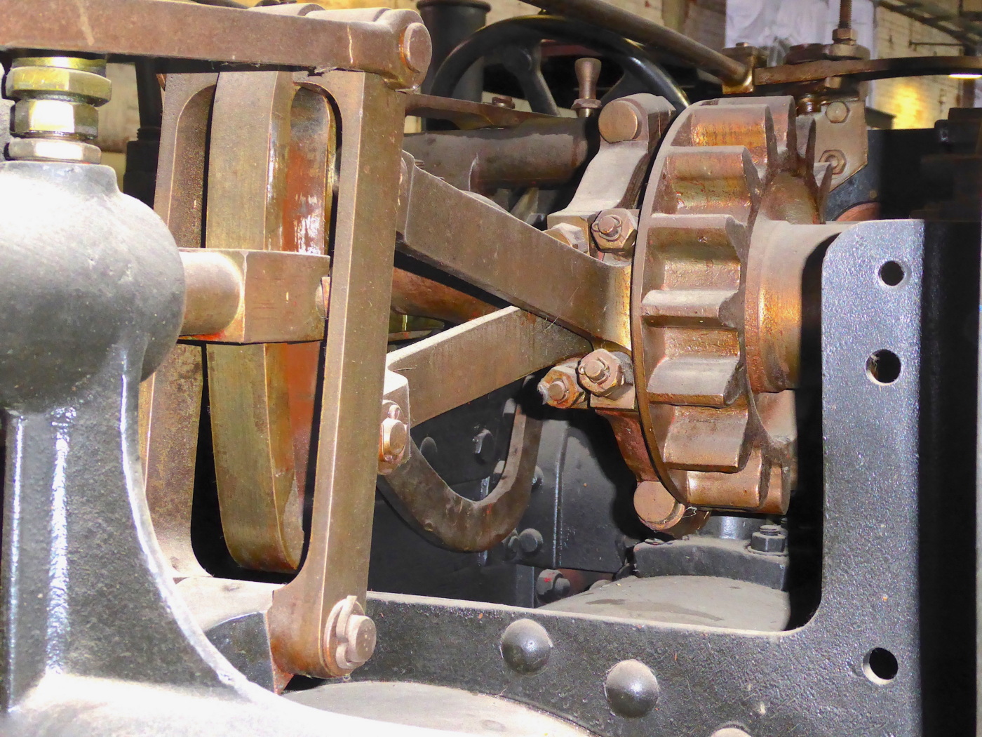 Um zeigen zu können, wie genau die lineare Bewegung der Kolben in die Kreisbewegung der Räder übertragen wurde, möchten wir diese Dampfmaschine mittelfristig wieder in Bewegung vorführen.