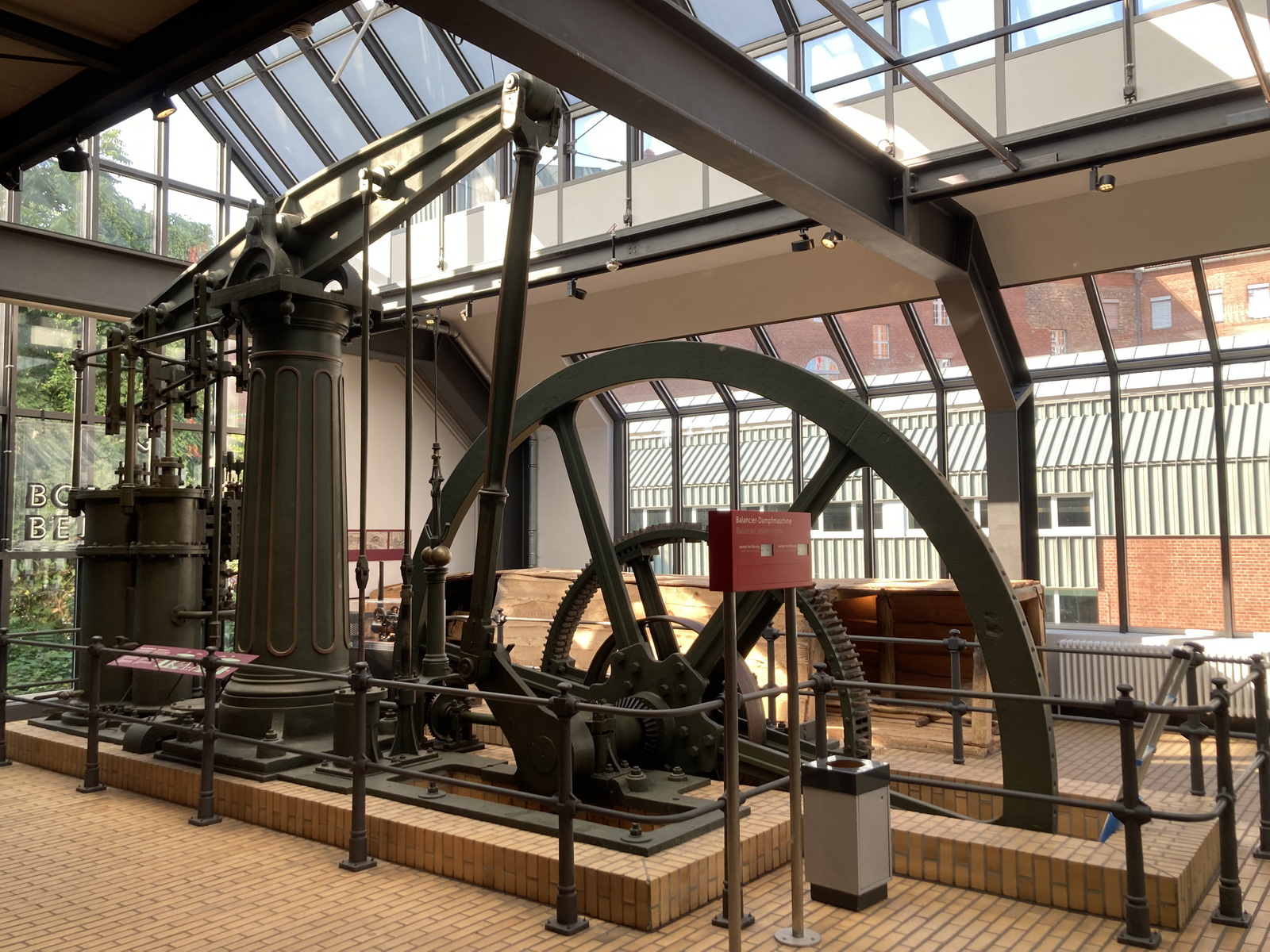 Die Ausstellung „Eisenbahn: Revolution und Alltag“ im Lokschuppen 1 des Museums wurde nach Neugestaltung 2024 wieder eröffnet. Als Blickfang gleich zu Beginn des Rundgangs veranschaulicht die Balancier-Dampfmaschine aus dem Jahr 1859 von Borsig, dass am Anfang der industriellen Revolution die Dampfmaschine stand.