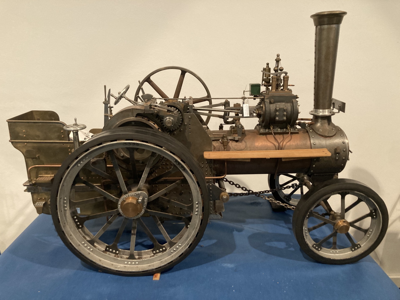 In den Sammlungen des Deutschen Technikmuseums Berlin befinden sich auch Modelle mobiler Dampfmaschinen. Der AK Dampf hat sich als Beispiel für dampfgetriebene Straßenfahrzeuge das 1:4-Modell eines Dampftraktors ausgewählt.
