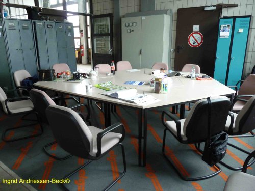 15. Mai 2012: Unser Aufenthaltsraum hat endlich neue Tische und Stühle erhalten. Wenn wirklich alle anwesend sind, reicht allerdings der Platz nicht. Ein neuerer PC fehlt noch.