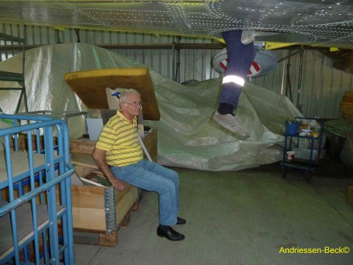 Dezember 2020:   Hurra, unsere IL-14 ist wieder in einem Tempelhofer Hangar und steht auf ihren eigenen Rädern! Wir können in die Winter- und Corona-Pause gehen.
