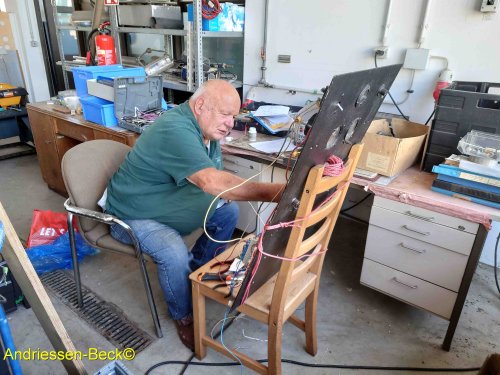 Wir warten noch immer auf die Rückkehr des Seitenruders mit Hoheitszeichen. Ebenfalls noch immer bastelt Klaus Peter an der Bedientafel für die Fotooperateure.